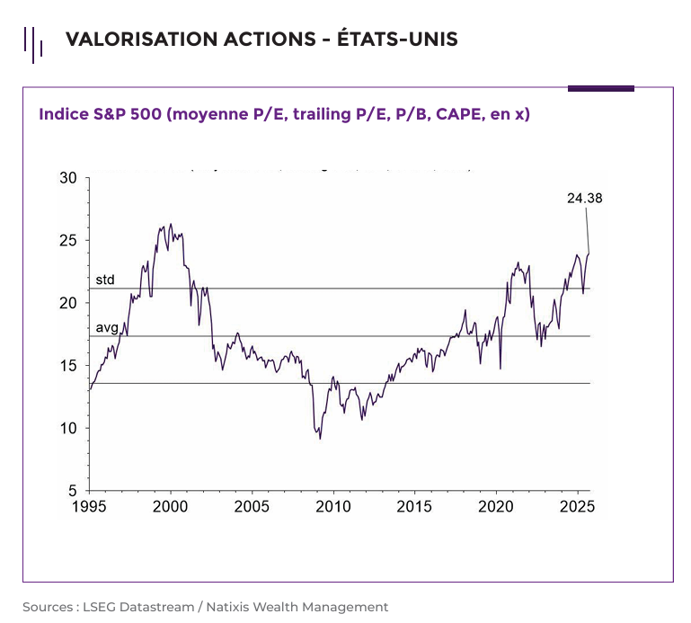 Ainsi, les marchés offrent deux scénarios aux conclusions radicalement opposées : d’un côté, un risque de dégonflement des valorisations pour revenir proches des fondamentaux économiques, et de l’autre, l’entrée dans une forme d’euphorie soutenue par une masse de liquidité abondante qui doit s’investir. C’est la Réserve fédérale américaine qui finira par trancher avec la conduite de sa politique monétaire. Succomber aux appels de Donald Trump et baisser significativement les taux afin de soutenir le cycle ouvre la voie à un emballement spéculatif. De l’autre côté confirmer la vigilance dans la lutte contre l’inflation et assumer enfin un véritable freinage de l’économie américaine au risque de traverser une correction des marchés.